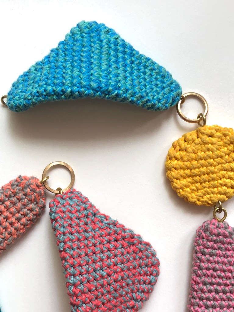 cotton, jute, acrylic paint, hardening agent; bracelet, 2025. ca. 12 x 15 cm; internal size 20 cm.